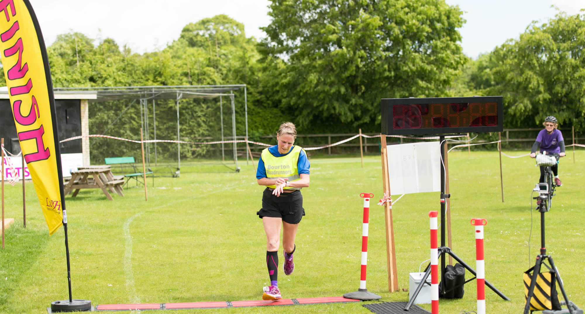 Most of Bourton Roadrunners’ members were engaged in organising and support duties; however, a few were brave enough to take-on the race. David Turnbull maintaining his push in the County MV65 category completed the half marathon in 1:56:38, despite have celebrated his 70th birthday during the week. Next to finish was Gillian Carrick (2:07:00) followed by race sweeper-runner Liz Hulcup (2:37:46).