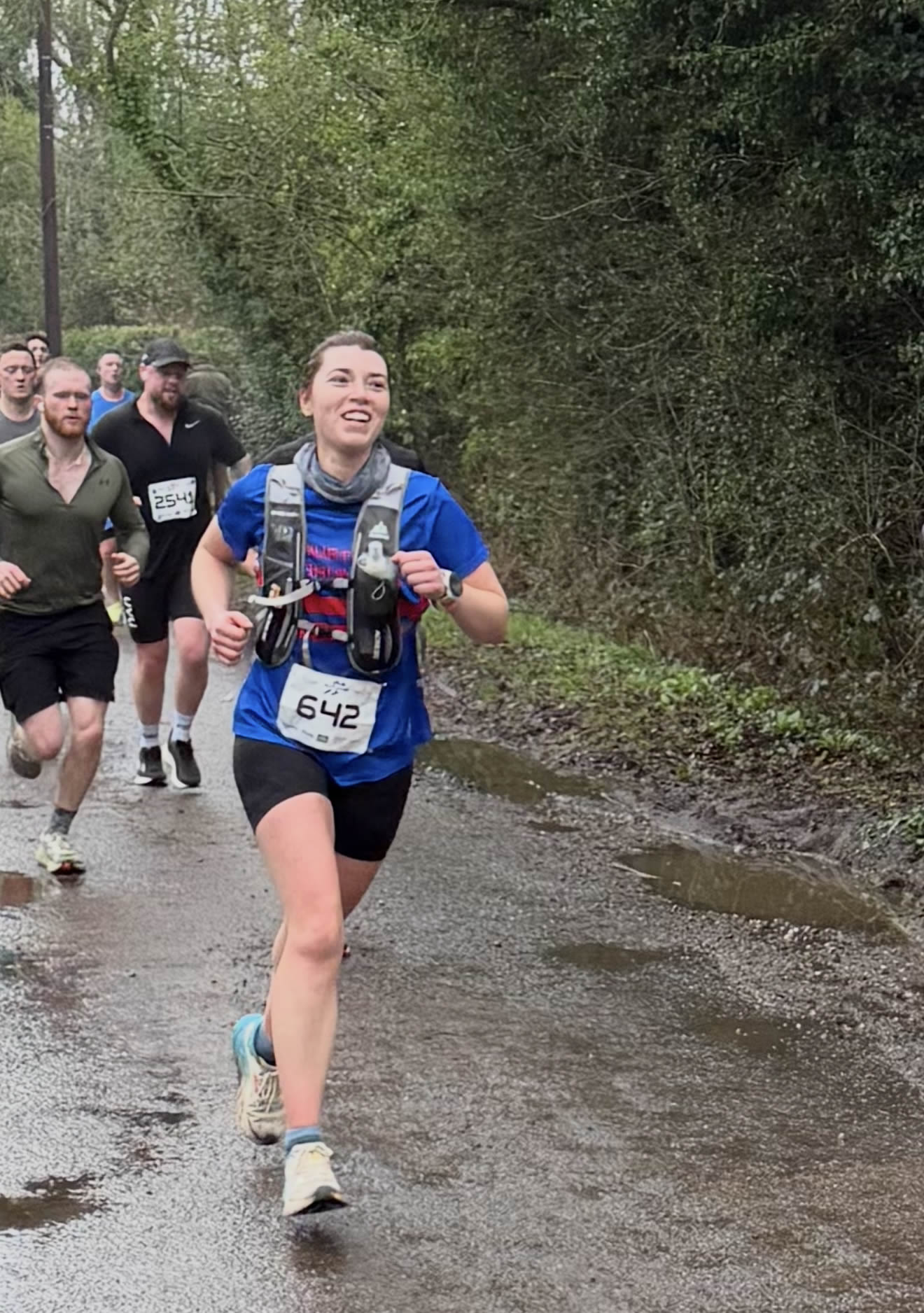 Meanwhile, on Saturday, three members ventured to Huntley, Gloucestershire, for the Mayhill Massacre. Comprising of an eight-nine mile tough cross country run, featuring demanding climbs and some very muddy trails. Kevin Goodwill opted for the Canicross race, where he and "Meg" gave a sterling performance, finishing in second place with a time of 1 hour, 7 minutes and 33 seconds. While Kevin was making his final attempt to catch the leader he became separated from one of his running shoes in the mud; all part of the fun!